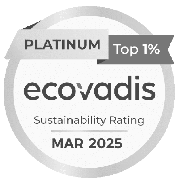 De plus, après 3 années de Médaille d’Or Ecovadis, elle a obtenu la Médaille Platinium EcoVadis en mars 2025, témoignant de son engagement constant en matière de responsabilité.